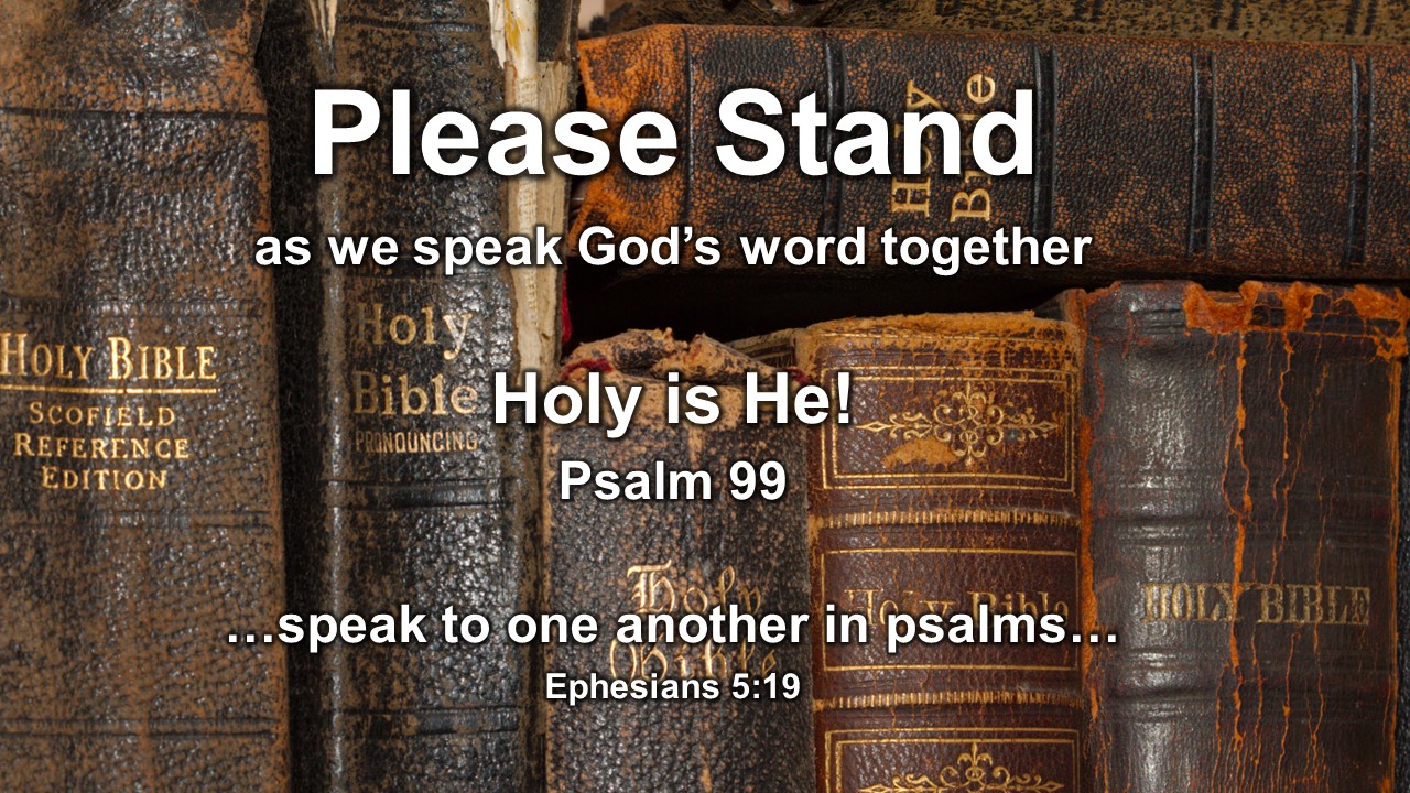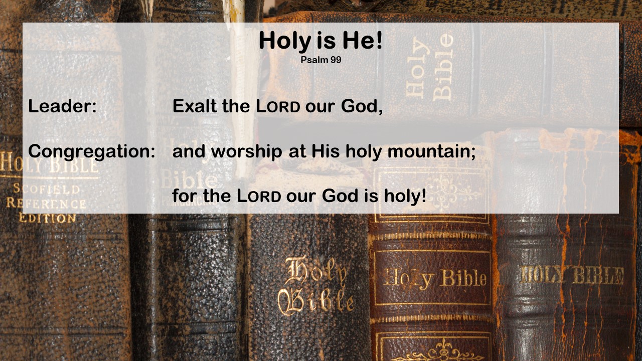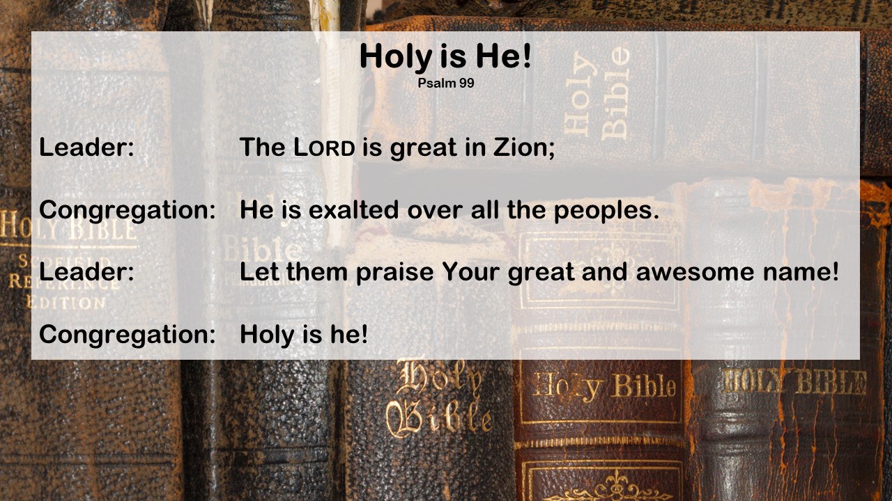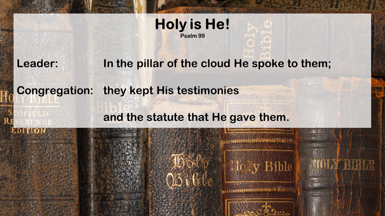 I never feel bound by the lectionary-assigned scripture readings, but I will usually consult the Revised Common Lectionary for a reading just to keep me from returning to the same passages each time. On this week, Psalm 99 was a very apropos passage and very adaptable to our back-and-forth format.