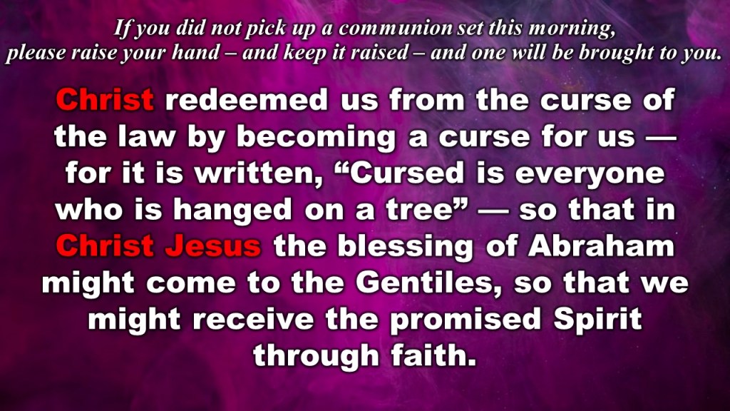 After the baptism was completed, we all – including our new sister – shared in the Lord’s Supper together. As always, a scripture was on-screen with references to Jesus marked in the color red. Each week the passage changes, but the focus remains on Jesus and the atoning sacrifice he made.