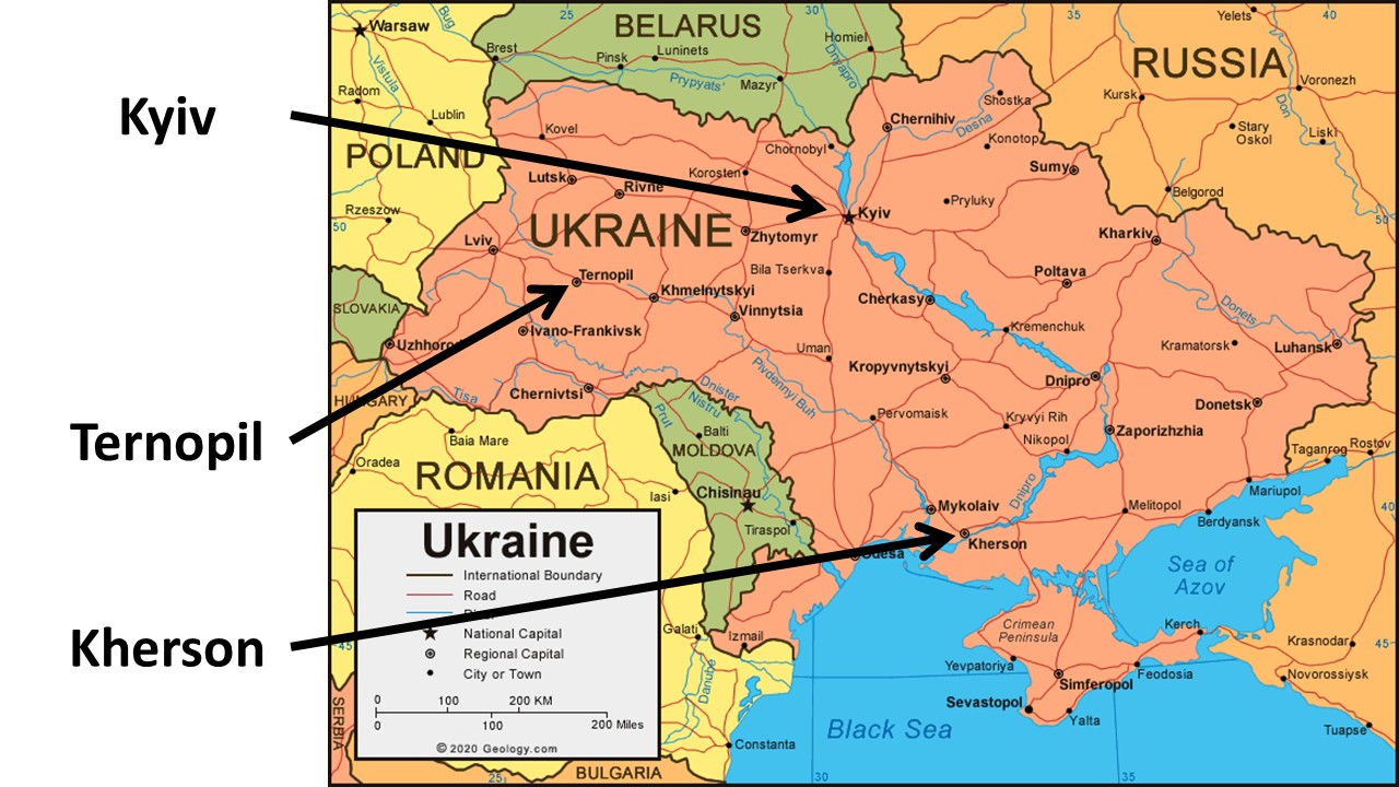 On this day, the current events on everyone’s mind were related to the growing conflict in Eastern Europe. I began a special set of slides with a map of Ukraine and an arrow marking the city of Mykolayiv. Then I introduced and gave a short situation report on the status of Mike, Andrea, Corwin, Elora, Kerys, and Peregrin Soto as missionaries in Mykolayiv, Ukraine. I followed this up with an introduction and status report on Brandon, Katie, and Justus Price and the Ukrainian Bible Institute in Donetsk, Ukraine.