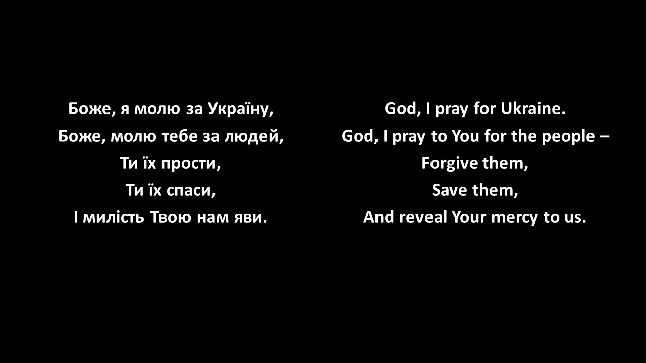 There is a Ukrainian-language song called Боже, я молюсь за Україну (“God, I Pray for Ukraine”) which is a heartfelt prayer. Insofar as Ukrainian and Russian are very, very similar languages (and I speak Russian), I was able to translate an excerpt of the lyrics and present them on-screen. I read the Ukrainian text while the English was on the screen. After these prayerful lyrics were introduced, we watched a sixty-second clip of the Church of Christ in Ternopil, Ukraine. As I understand the video, it features both local Ternopil Christians and Christians from other regions of Ukraine who were traveling westward to Poland to escape the violence. We heard Ukrainian Christians praying-in-song for their own land.