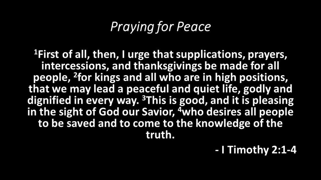 The scripture text I Timothy 2:1-4 flashed on the screen next, an explanatory passage on prayer.
