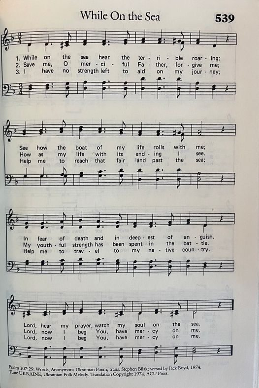 While on the Sea was a special song. We have sung it together at this congregation once before, but it’s not common in our repertoire or well-known by us. Rather than re-explain the significance of this translated Ukrainian folksong, I will cite this Facebook post from Christopher H. Huston.